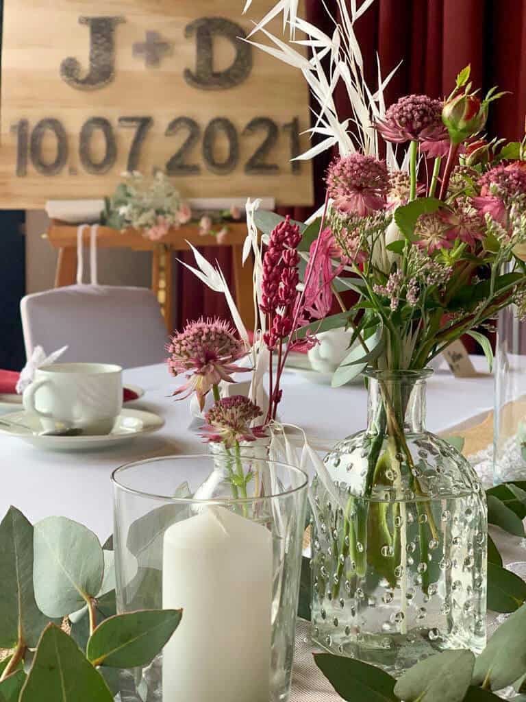 Zu einer gelungenen Hochzeit gehört viel Liebe und Blumen von „Blüte mit Stil“.